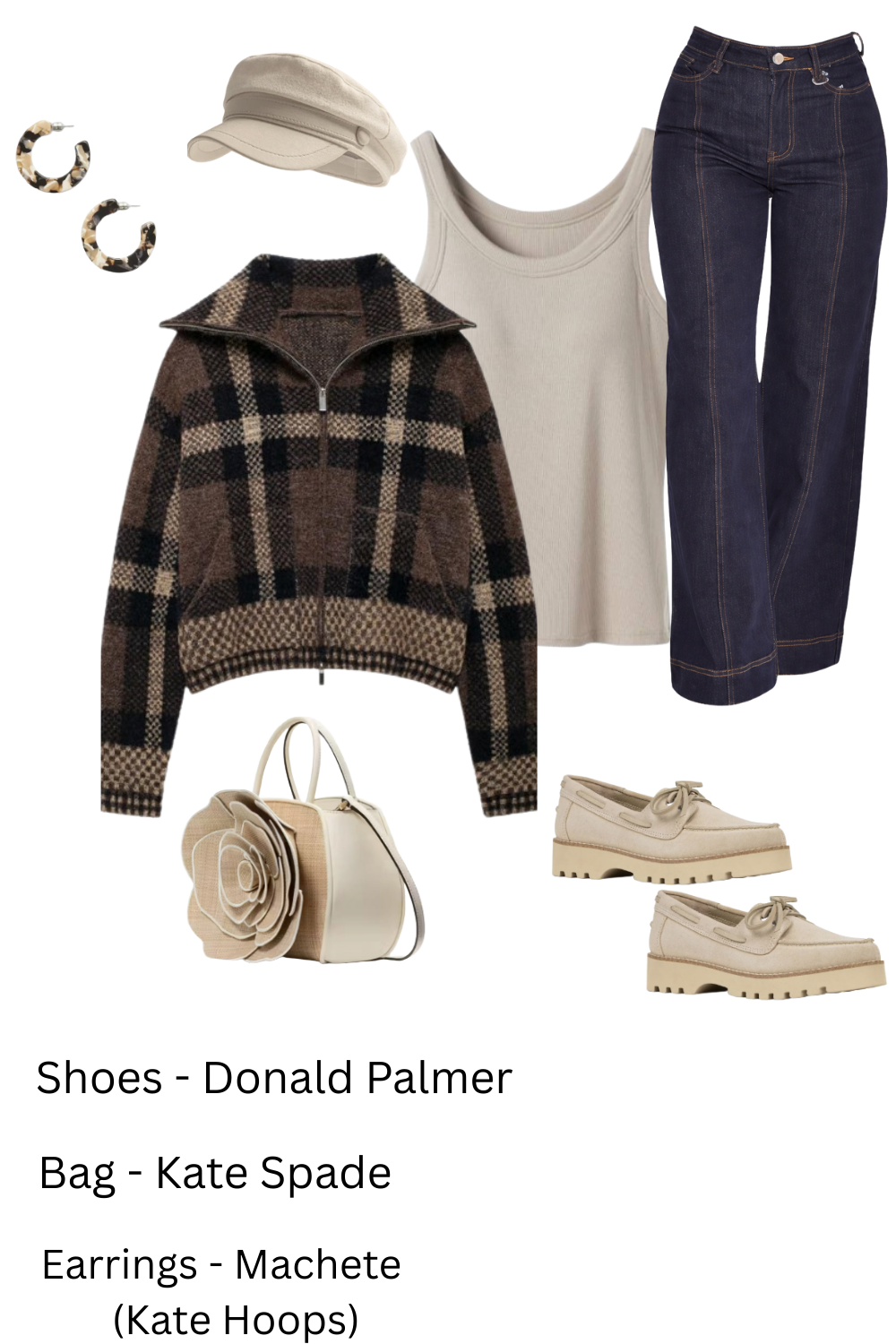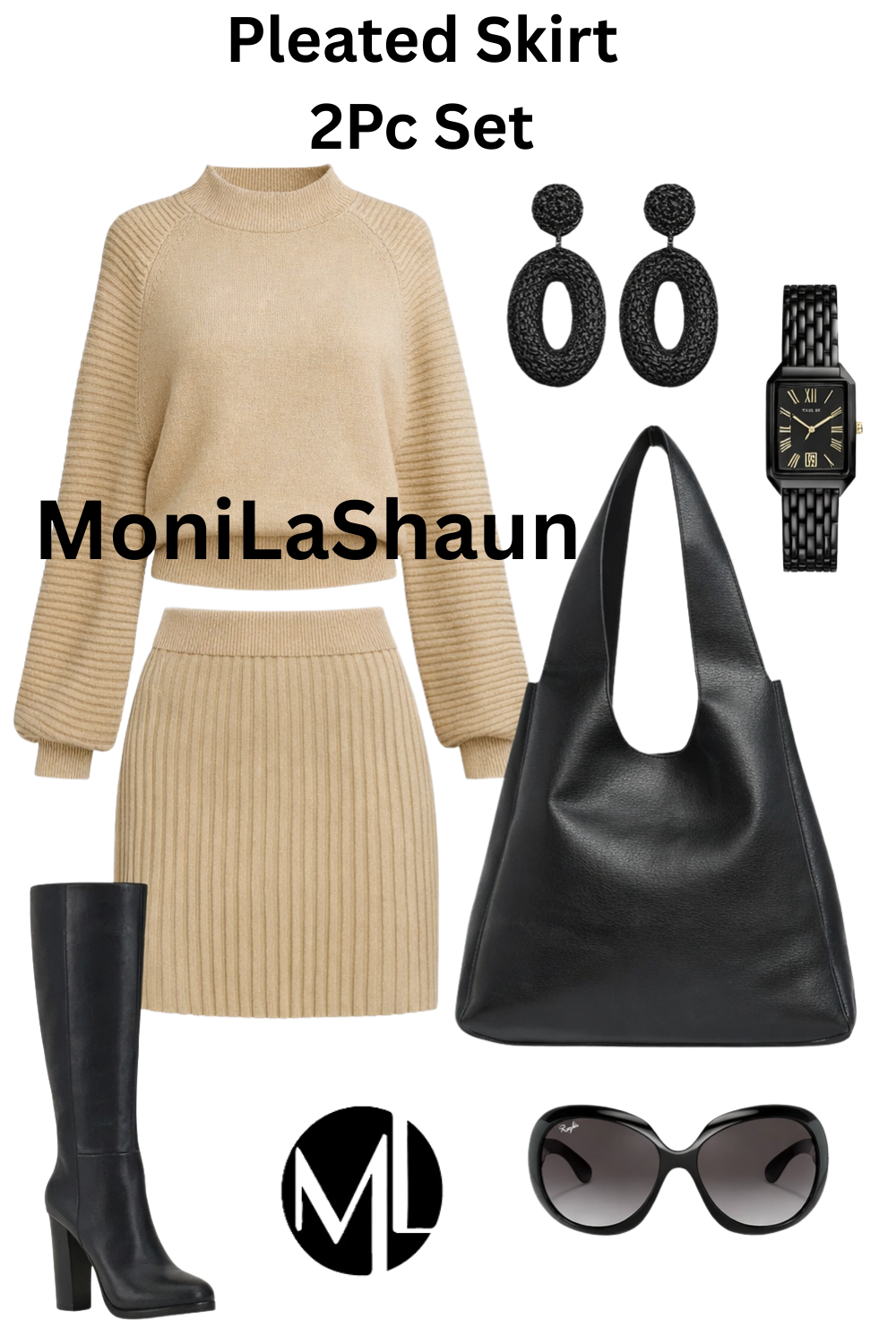 Beige Knit Set with Black Accessories Outfit Idea